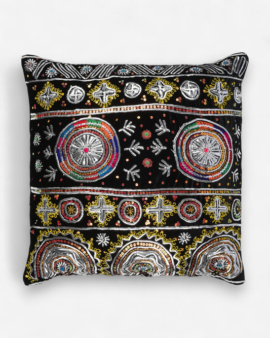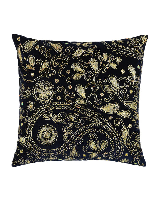 Hurmuch Embroidered Cushion Cover Black-SSR-1181