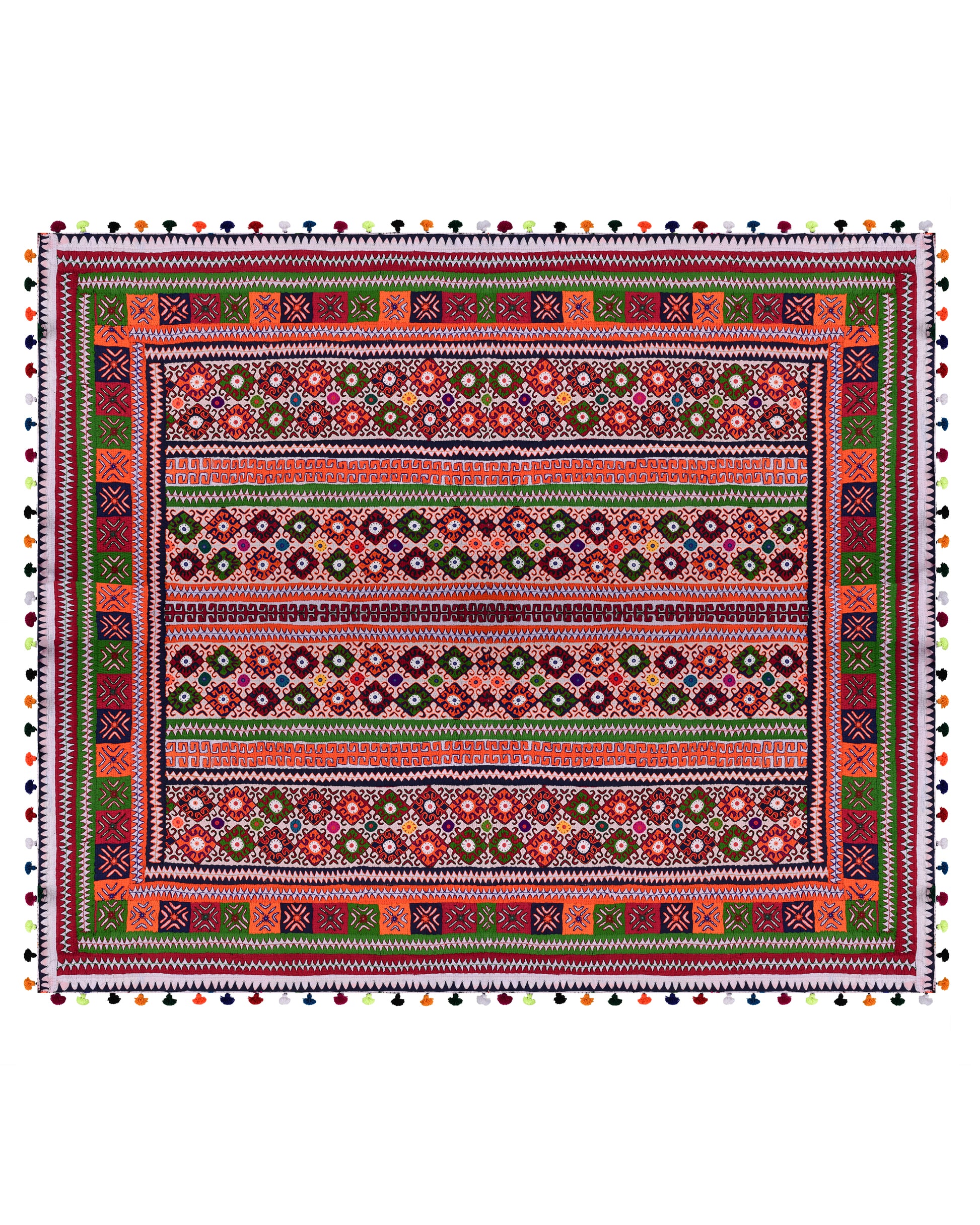 Stitched with heart and heritage, this Handmade Traditional Rilli is a remarkable combination of Applique Cutwork and Kundi Embroidery, crafted through skilled hands of rural women artisans of Sindh. Each stitch is a tribute to age-old wisdom, passed down through generations and reimagined with artistry and pride.