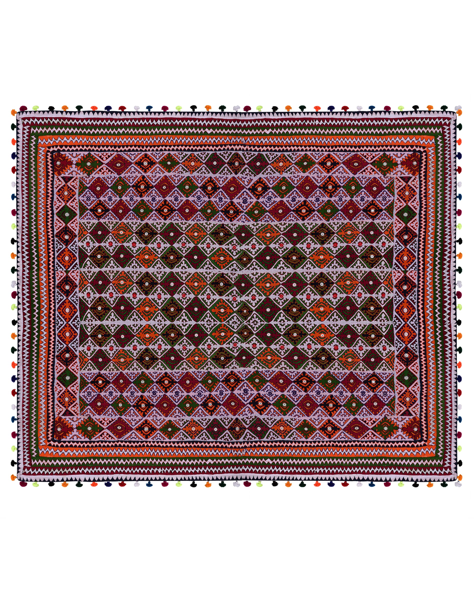 Crafted from fine-quality mixed cotton fabric, the Rilli is fully finished, with each detail meticulously hand-stitched. The Cutwork technique adds delicate openness and texture, while the Kundi embroidery, known for its fine threadwork, enhances the richness and intricacy of the design. A vibrant palette of multicolored fabrics is used, echoing the traditional aesthetics of Sindhi artistry.