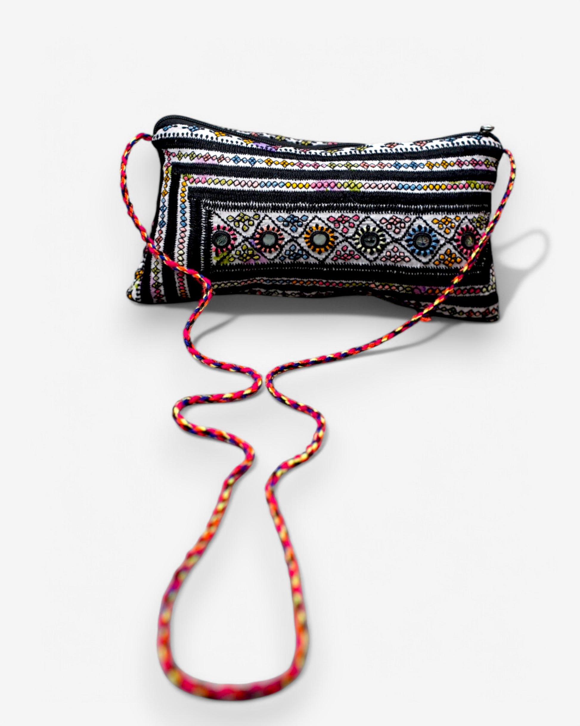 ہمارا شاندار ہینڈ بیگ دریافت کریں، جو بلوچی دستکاری کا شاہکار ہے۔ اعلیٰ معیار کے کپڑے سے ہاتھ سے تیار کردہ، اس بیگ کو پیچیدہ بلوچی کڑھائی سے مزین کیا گیا ہے، جس میں رنگوں کے بھرپور پیلیٹ میں متحرک جیومیٹرک پیٹرن اور پھولوں کی شکلیں ہیں، آئینہ کے نازک کام کے ساتھ لہجے میں۔ بلیک اینڈ وائٹ بیس کو ایک کثیر رنگی لٹ پٹا سے مکمل کیا گیا ہے، جس سے شخصیت کا ایک پاپ شامل ہوتا ہے۔ زپ کے محفوظ بندش کے ساتھ، یہ بیگ عملی اور سجیلا دونوں طرح کا ہے، روایتی فن کاری کا مظاہرہ کرتے ہوئے آپ کی ضروریات کو لے جانے کے لیے بہترین ہے۔ اس منفرد، ثقافتی طور پر متاثر کن آلات کے ساتھ اپنی شکل کو بلند کریں۔